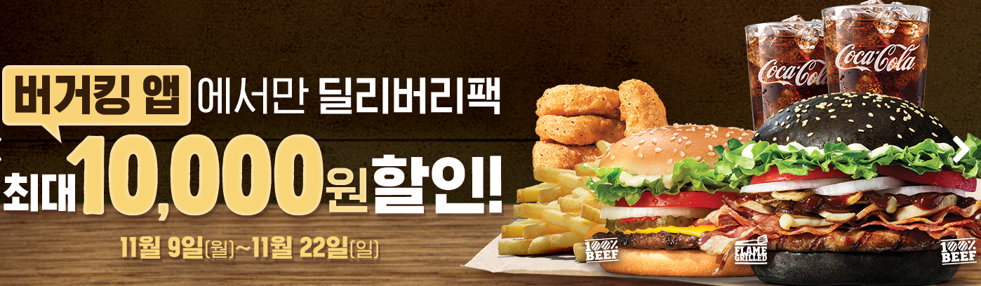버거킹 앱에서만 10,000원 행사이고요, 11월 9일부터 22일까지 입니다.