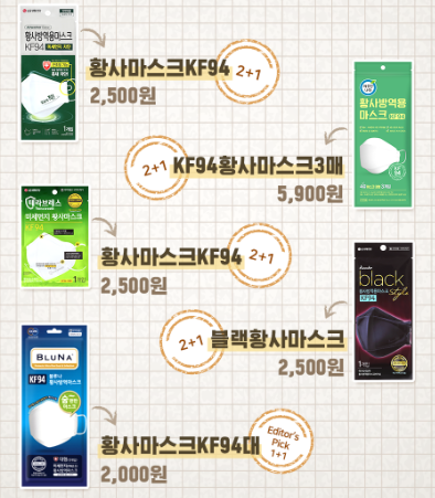 코로나19 재확산 조짐 보이니 필수 아이템은 준비하셔야겠죠. kf94 인증 마스크 2+1