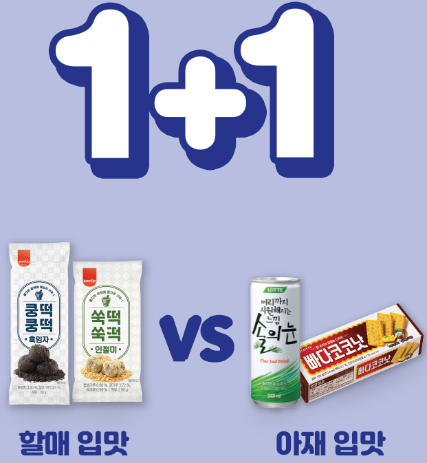 동일상품끼리 1+1만 가능하지만 쿵떡 하고 쑥떡은 교차 가능하다고 하네요.