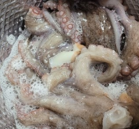 3번 반복하면 문어 다리가 이쁘게 됩니다. 너무 오래 삶으면 질기게 되므로