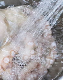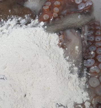 문어에 밀가루 4스푼 뿌려 손빨래하듯 주물러 주시면 이물질과 먹물이 제거됩니다.
