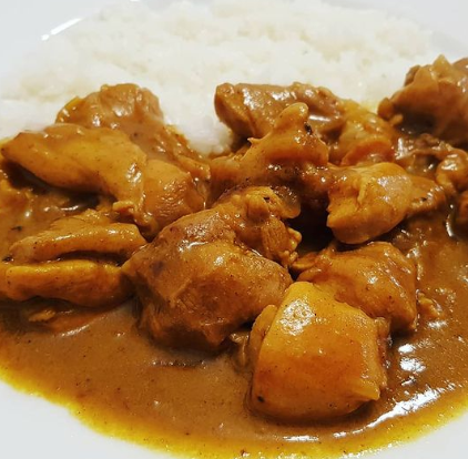 마이야르 닭고기 + 캐러멜 라이징 양파를 넣고 끓이다 마지막에 가람 마살라, 고형 카레를 넣으시면 끝.