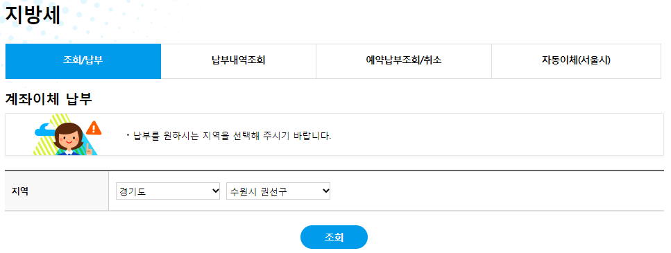 본인의 주거래 은행(인터넷뱅킹) 접속 후 공과금  ▷▶ 지방세 납부 ▷▶ 조회 납부하시면 됩니다.