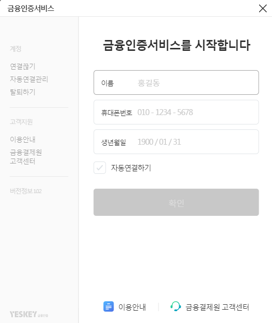 비밀번호 대신 6자리 숫자로 인증으로 간단하며 갱신기간은 3년입니다.