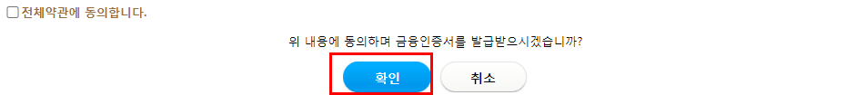 금융인증서 가입 시 약관 및 개인정보 수집 이용 동의서 확인.