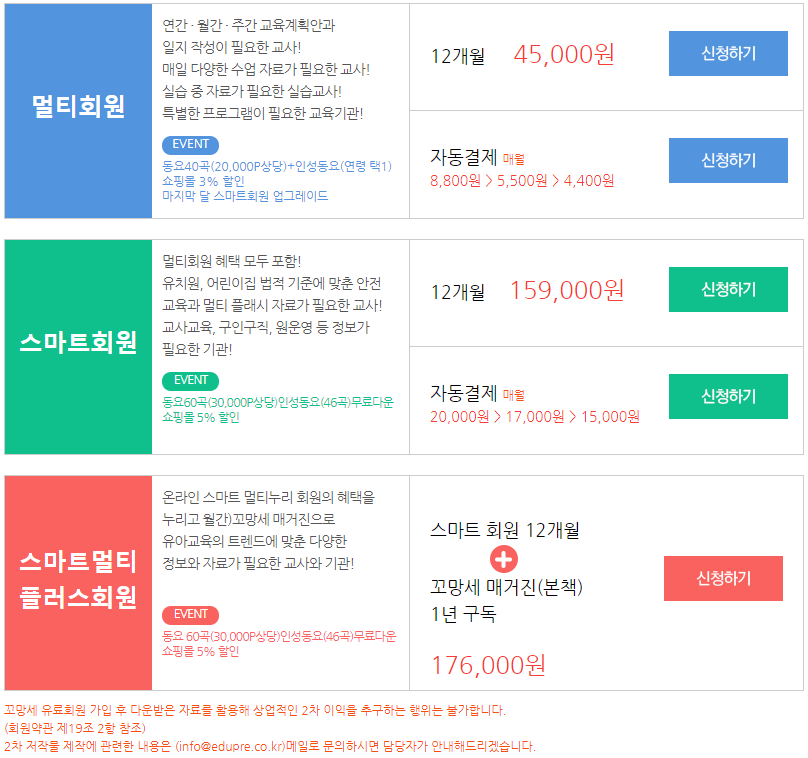 스마트 회원은 멀티회원 + 유치원 안저 교육, 멀티 플래시 자료 등을 제공.