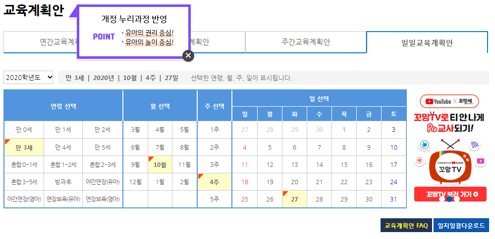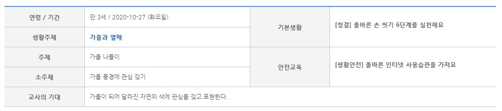 연령 선태 월 선택 주 선택에 따라 교육할 내용, 주제, 소주제, 선 새님이 아이들에 대한 기대